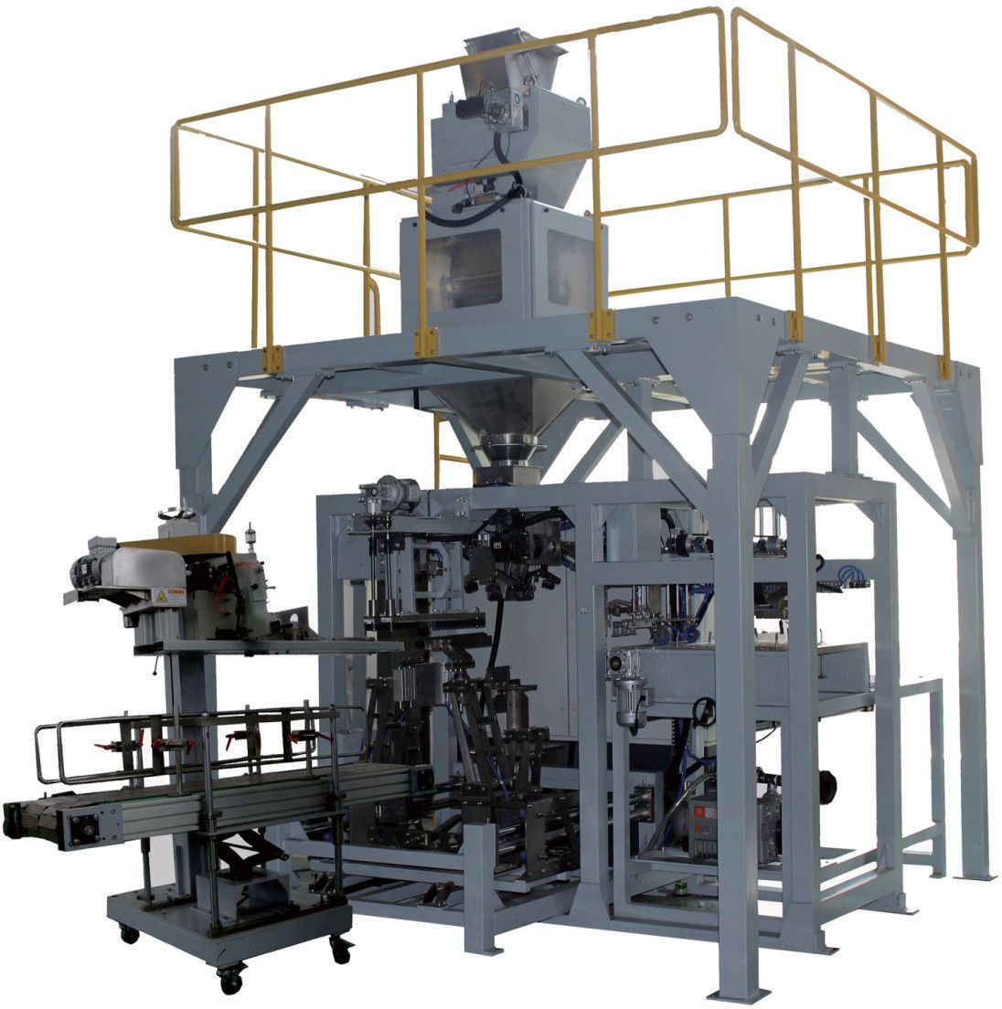 BD-C10 大袋全自動包裝機流水線,用于預(yù)制袋自動開袋、上袋,與我公司其他設(shè)備配套可實現(xiàn)從上袋、計量、充填、封口、縫包、整形、碼垛等自動化袋包裝生產(chǎn)線。