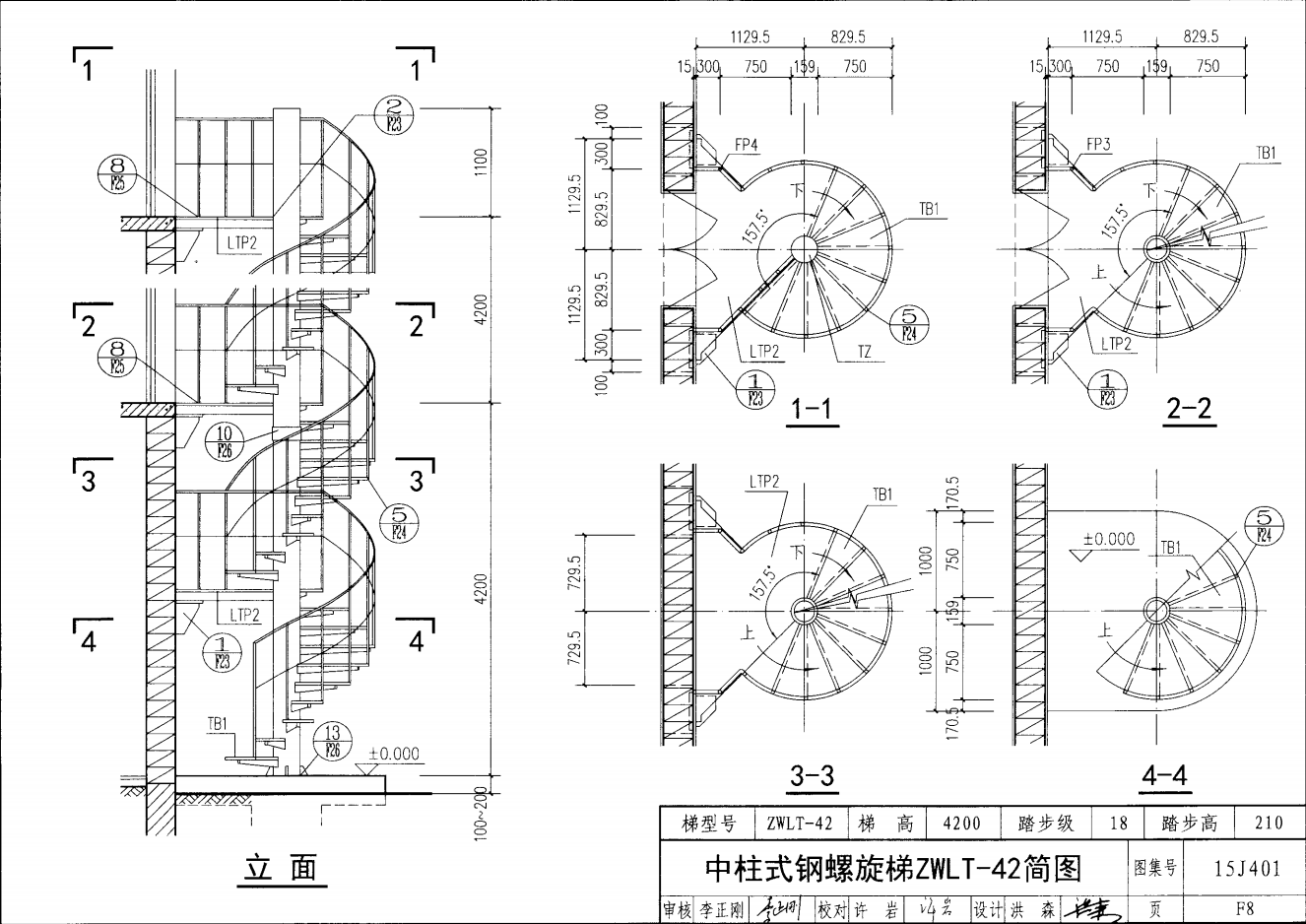 中柱式鋼螺旋梯ZWLT-42簡圖