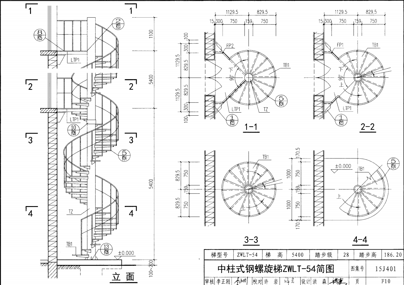 中柱式鋼螺旋梯ZWLT-54簡圖
