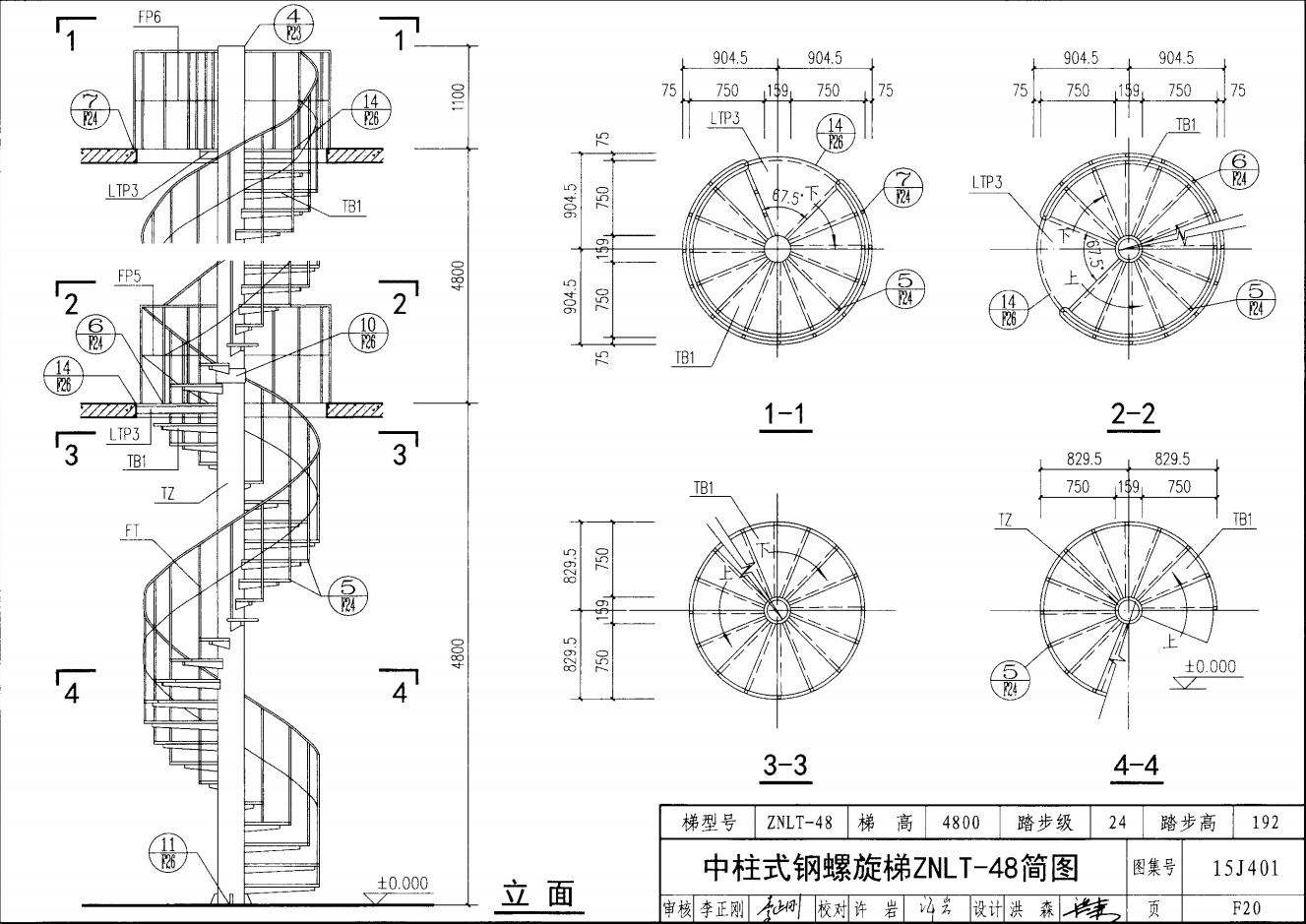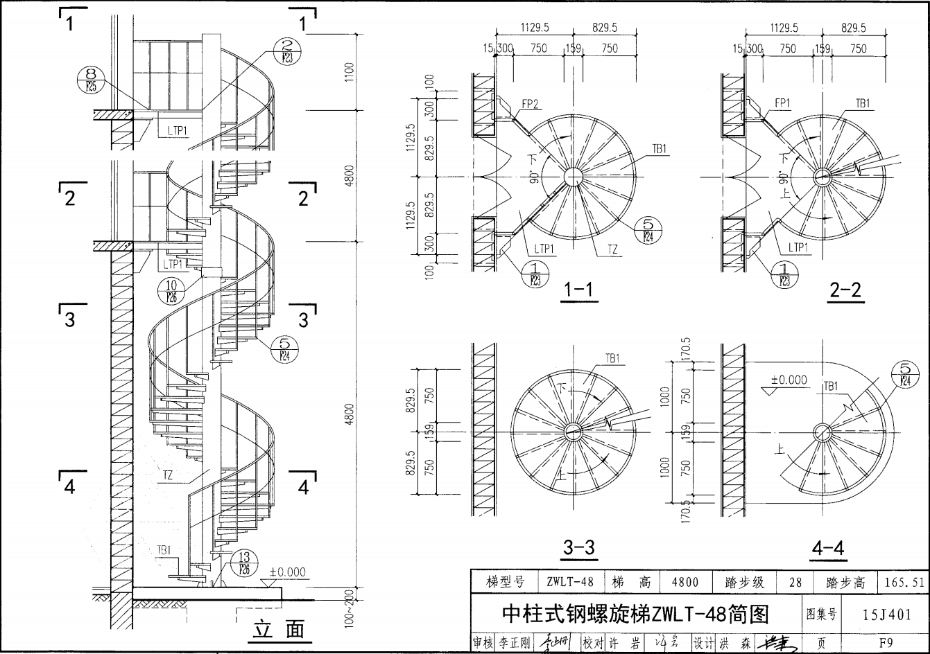 中柱式鋼螺旋梯ZWLT-48簡圖