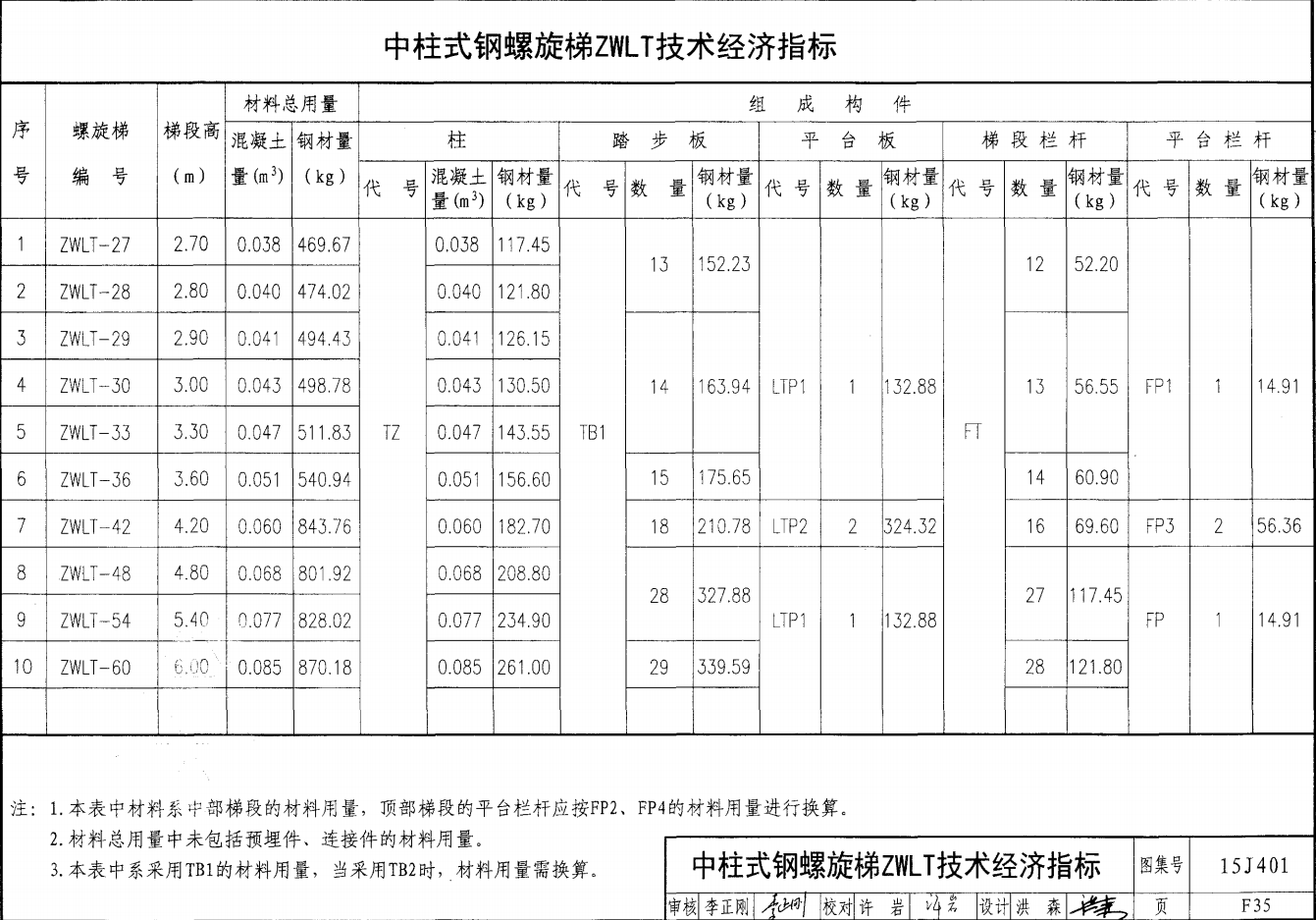 中柱式鋼螺旋梯ZWLT技術經濟指標