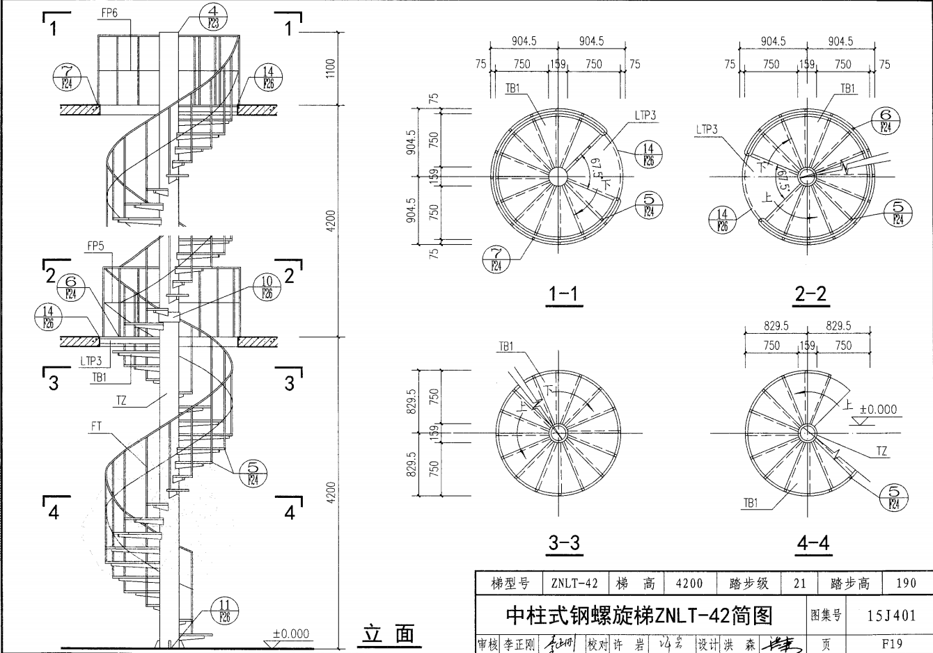 中柱式鋼螺旋梯ZNLT-42簡圖