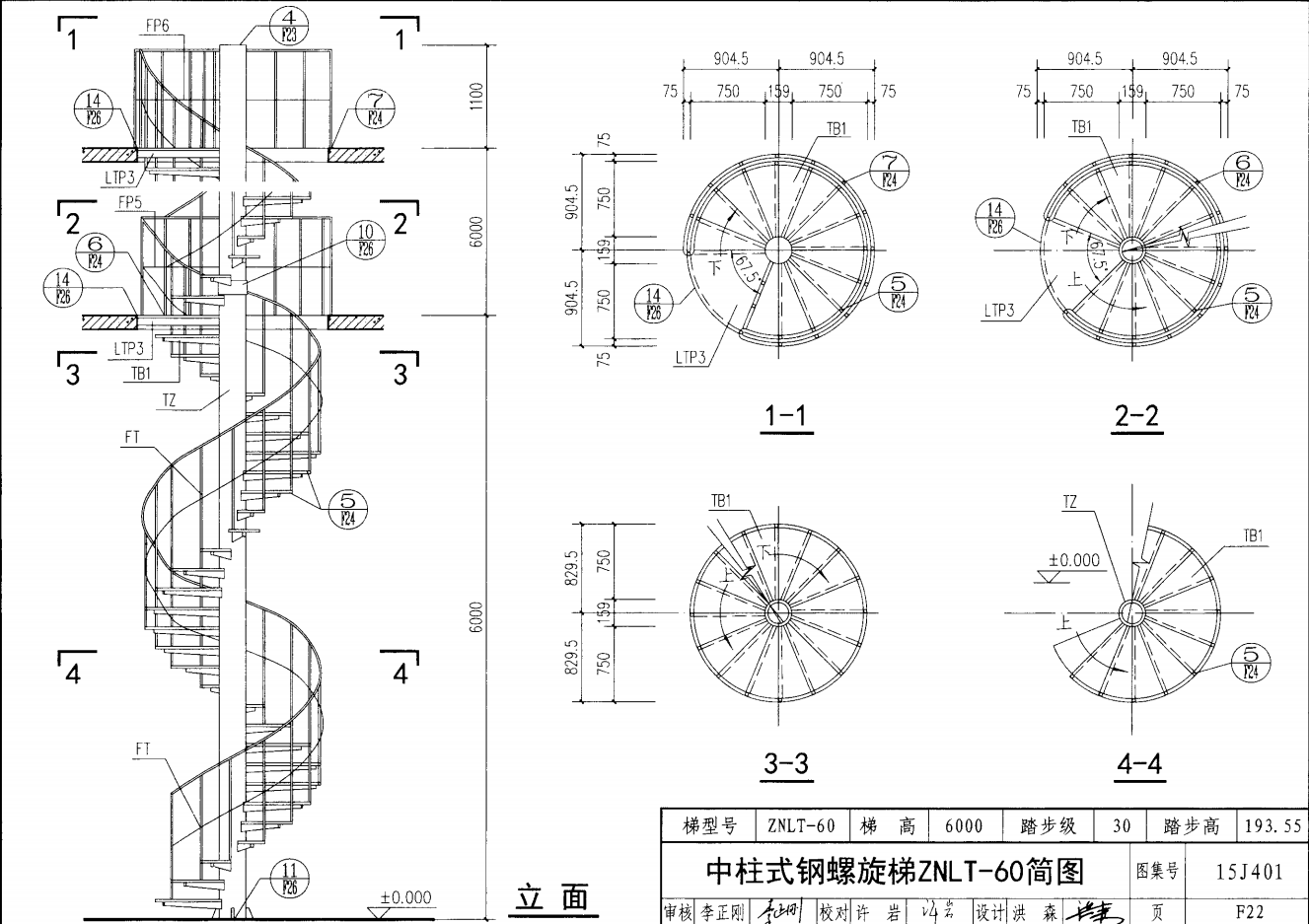 中柱式鋼螺旋梯ZNLT-30簡圖