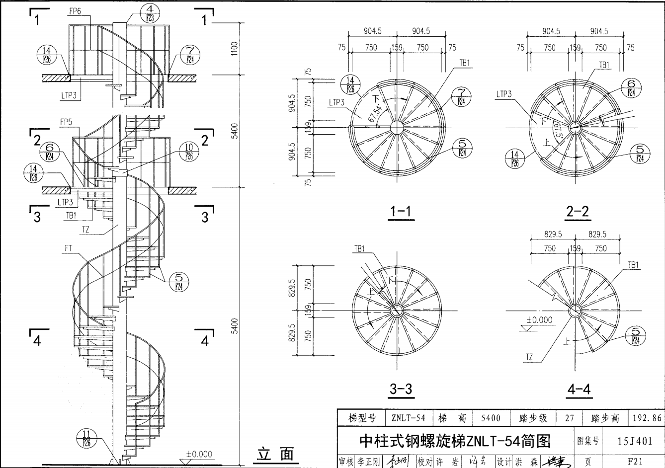 中柱式鋼螺旋梯ZNLT-27簡圖
