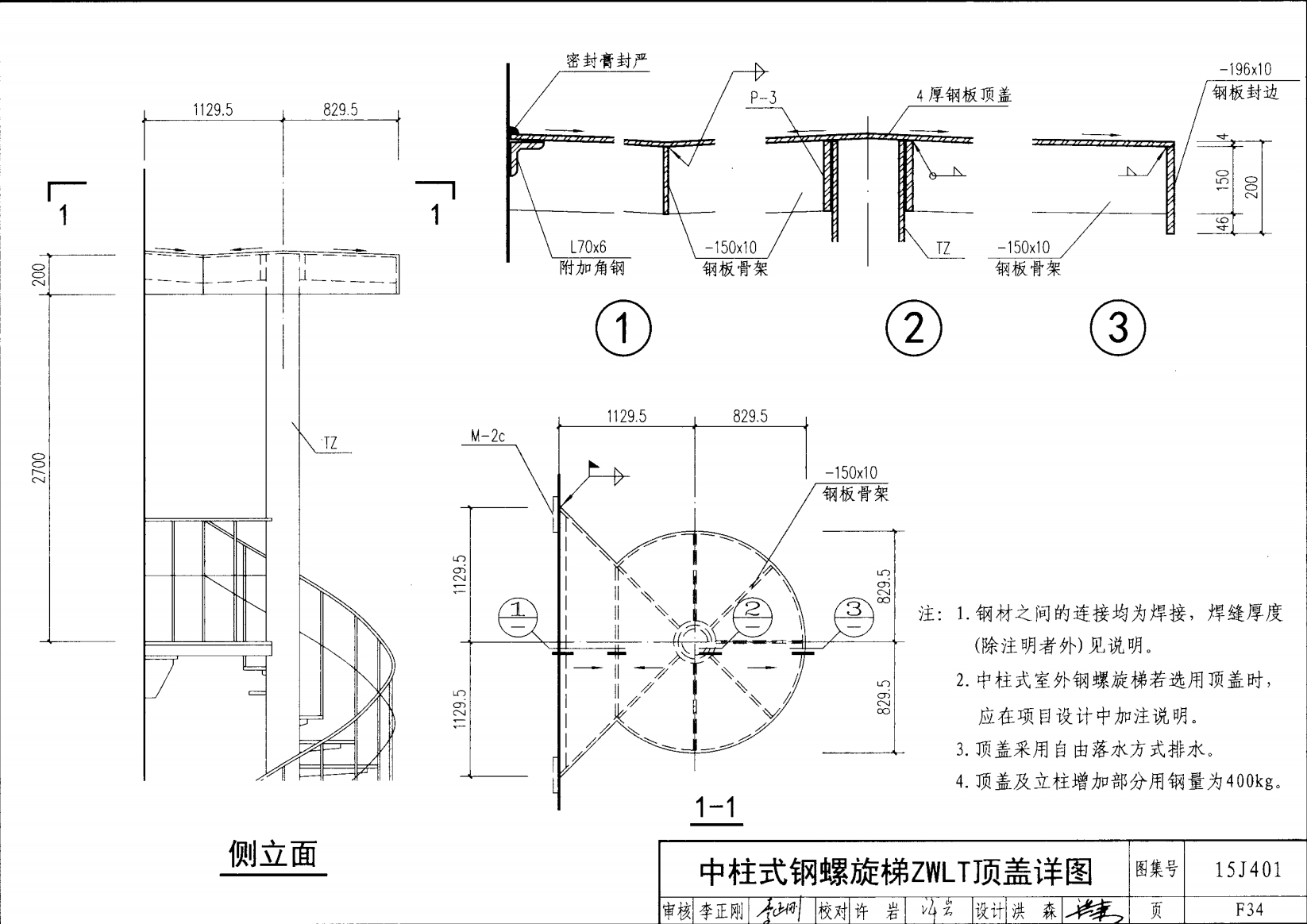 中柱式鋼螺旋梯ZWLT 頂蓋詳圖