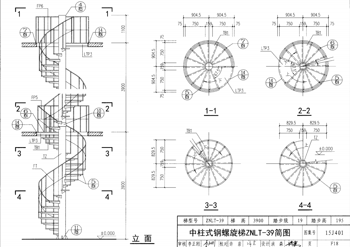 中柱式鋼螺旋梯ZNLT-39簡圖