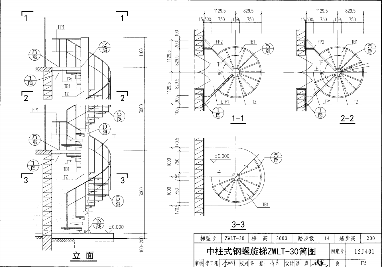 中柱式鋼螺旋梯ZWLT-30簡圖