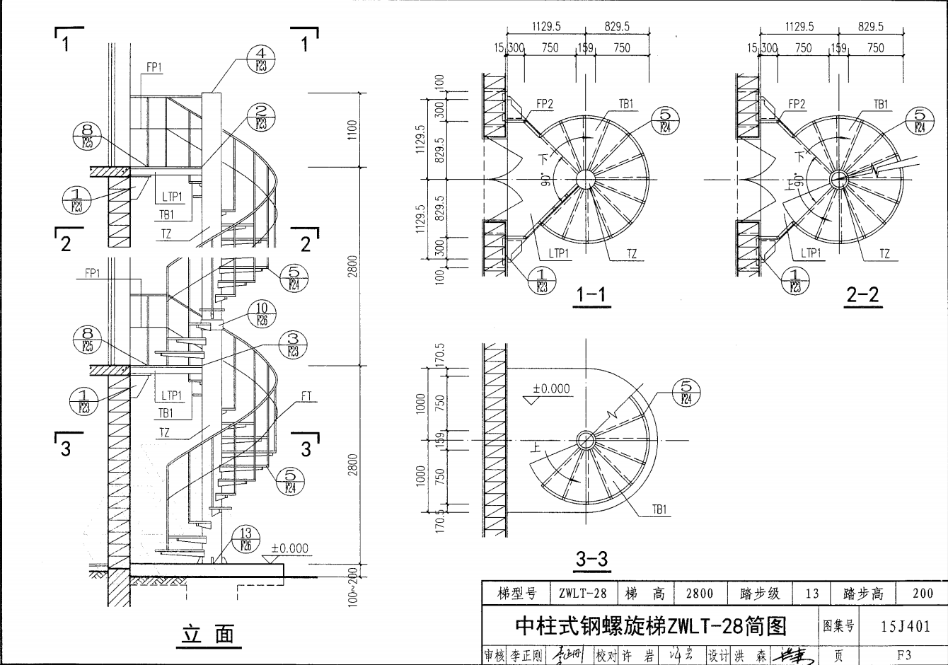 中柱式鋼螺旋梯ZWLT-28簡圖
