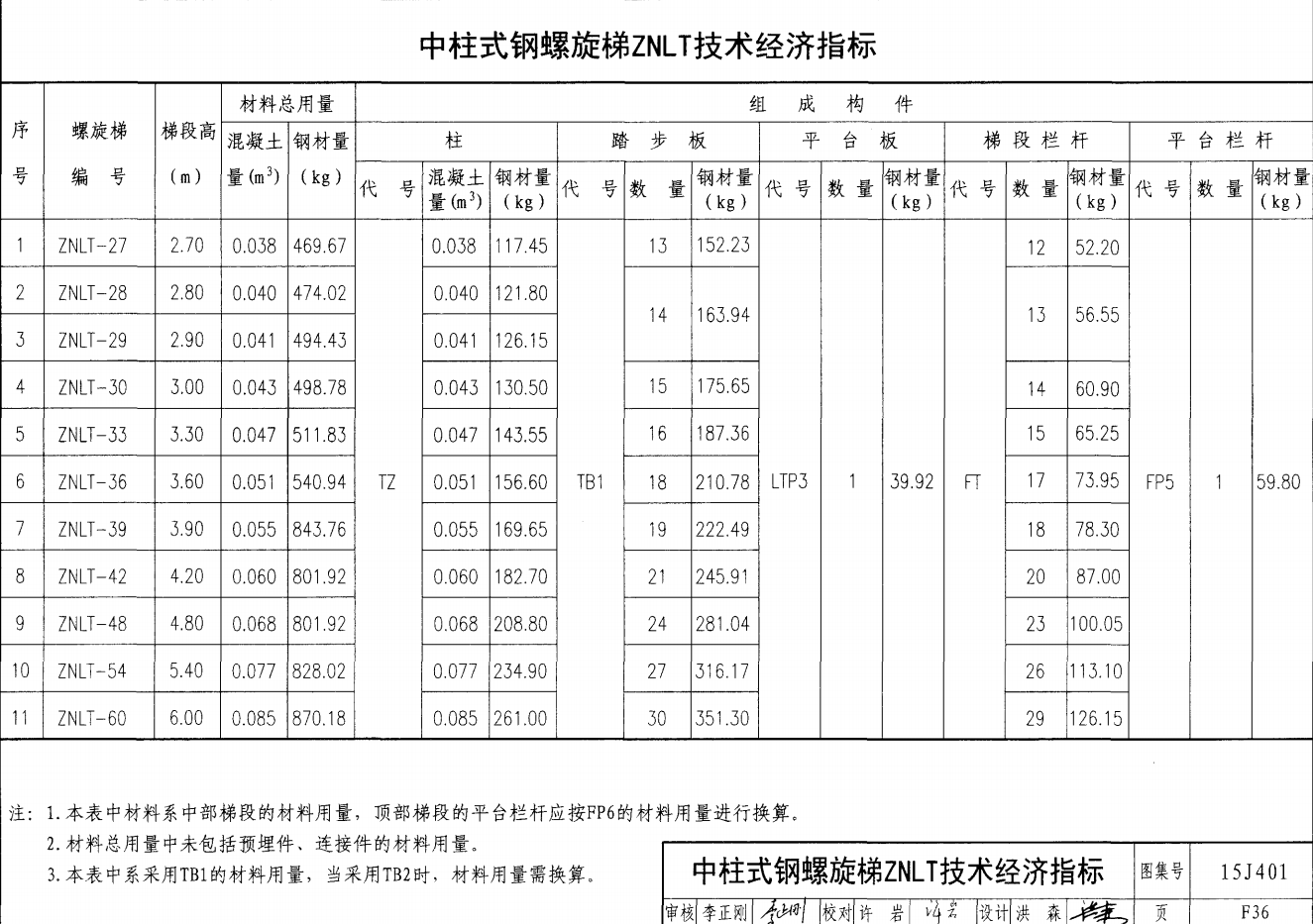 中柱式鋼螺旋梯ZNLT技術經濟指標